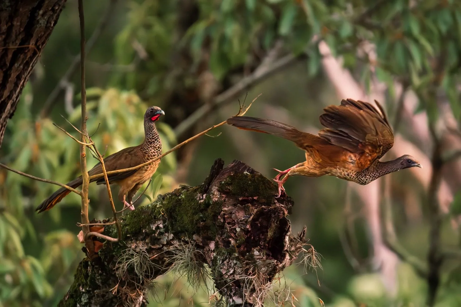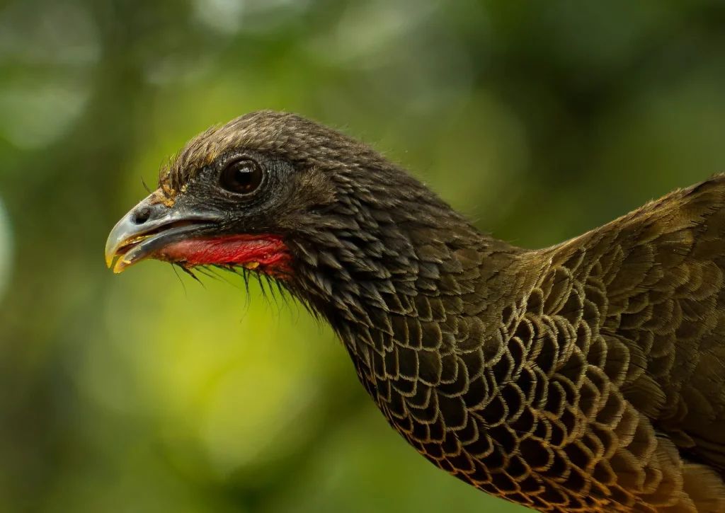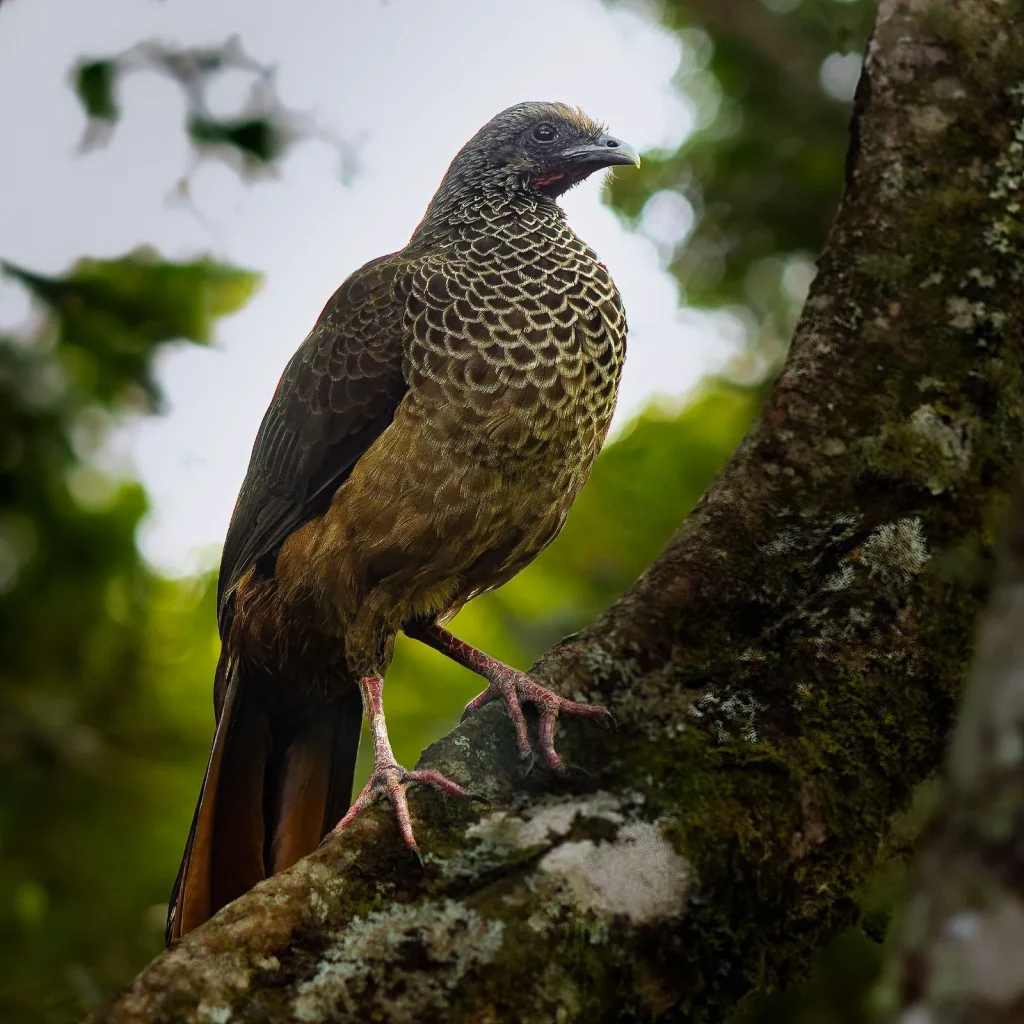 La Guacharaca Colombiana (Ortalis columbiana) es una de las joyas de nuestro país. A diferencia de otras guacharacas del continente, esta especie es endémica, lo que significa que en todo el planeta solo habita en los valles interandinos de Colombia. Sus patas rosadas y el característico color castaño en la punta de sus alas son marcas clave para identificarla mientras recorre el dosel de nuestros bosques.