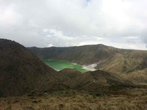 “En su cumbre hay un volcán, del cual algunas veces sale cantidad de humo, y en los tiempos pasados (según dicen los naturales) reventó una vez y echó de si muy gran cantidad de piedras.